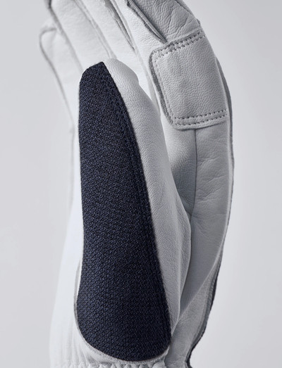 A shorter version of Hestra's classic Heli Ski glove with the same, warm characteristics and tough exterior. For those who ski all parts of the mountain and need a warm, reliable glove. Removeable liner aids in drying and enables you to adapt the liner depending on activity level and temperature. Warm and durable 5-fingers ski glove. Backhand made of windproof and breathable polyester softshell fabric. Impregnated goat leather provides solid grip and durability. Removeable fleece liner (Bemberg) with polyester insulation (G-loft). Outseams provide better comfort and grip. Neoprene collar with Velcro adjustment on the wrist's inside. Wrist strap/handcuffs included. Carabiner, eyelet and hanging loop provide several attachment options. Can be combined with other liners.