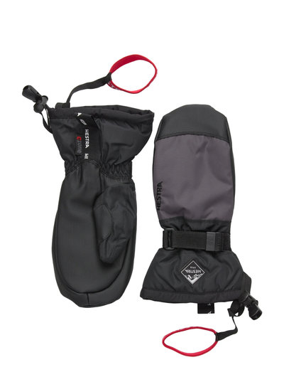 Warm and comfortable mitten for active kids. One of Hestra’s most popular junior versions perfect for skiing, play and outdoor activities in cold winter weather. Sewn in hardwearing polyester with a waterproof, breathable CZone membrane and a longer cuff to keep the snow out. Fingertips and palm are reinforced with PU-coated synthetic fabric for extra strength and good grip. The liner is made of polyester fleece with warm synthetic insulation. Also available in three and five-finger versions. Warm, waterproof mitten for kids. CZone membrane stops wind and wet getting in and lets moisture escape. Weather-resistant, breathable polyester on backhand. PU Grip synthetic polyurethane fabric on palm and fingers. Wolf Paw design on fingertips for extra strength. Fleece lining with warm synthetic insulation (Fiberfill). High cuff with drawstring adjustment. Velcro wrist adjustment. Hestra handcuffs (wrist strap) included. Machine washable.