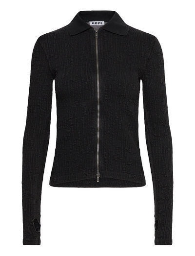 Lyra Zip Cardigan is a slim fitting zip-through top crafted from a textured interlock with a vintage wash. Details include a two-way zip and thumbholes. - Slim fit - Two-way zip - Textured interlock - Vintage wash