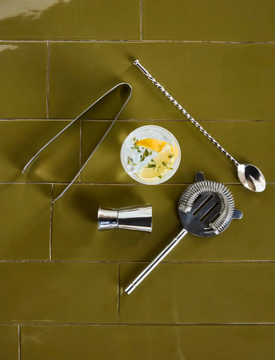 This silver-finished stainless steel set has everything you need for crafted cocktails at home.