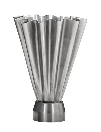 A statement piece that turns any console, dining table or shelf into an artful display. The brushed silver finish and wavy, hand-shaped form give the vase a modern edge while adding interest and depth to your décor.