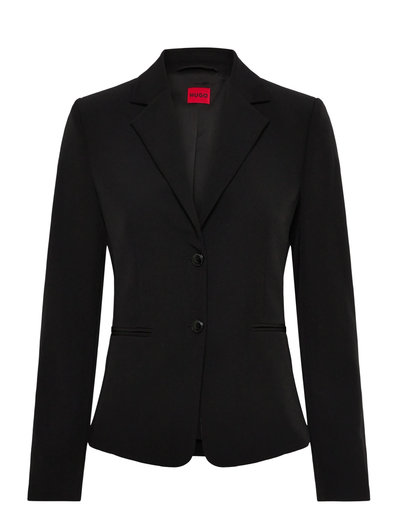 A sleek silhouette defines this tailored blazer. Featuring a two-button closure and notched lapels, this jacket offers a sharp, professional look. Its clean lines and structured fit make it a versatile addition to any wardrobe.