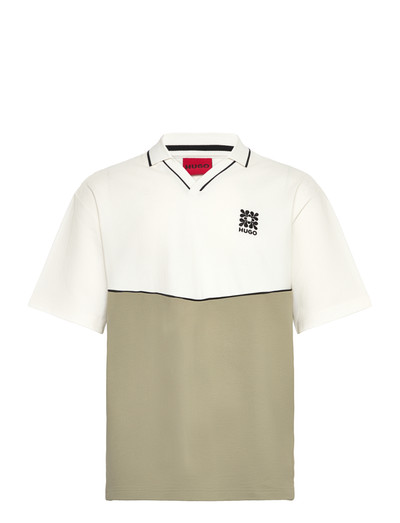A two-tone design defines this short-sleeved polo shirt, offering a modern twist on a classic style. The V-neckline adds a sporty touch, while the subtle logo detail provides a signature finish. Perfect for casual outings, this polo combines comfort and contemporary style.