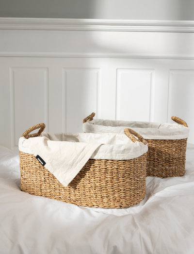 LAUNDRY WICKER SET Sea GrassSet of two56 x 36 X 25 cm & 50 x 30 X 21 cmBeautiful laundry wicker as a set of 2 pcs with practical handles and indside lining made in 100% organic cotton. Enjoy how this laundry hamper keeps your laundry organized while elevating your interior in a true Scandinavian way. Alternatively you can use the hamper for storage as well.Comes in a set of two.HOW TO WASH: - The inside lining can be washed at 60°C.