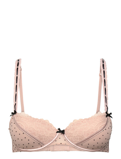 Add a touch of charm to your lingerie collection with our Dorothy bra. Designed with soft padding and supportive underwire, it offers a flattering lift and all day comfort. The cups feature a mix of dotted mesh and lace details. Finished with bows at the straps and center front. Combine with the matching bottom for a complete look.