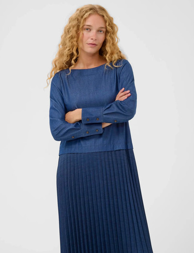 Crafted with a pleated skirt, this dress offers a sophisticated silhouette. The long sleeves and round neckline add to its refined style, making it suitable for various occasions.