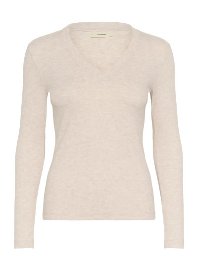 Crafted with a fine ribbed texture, this long-sleeve top offers a flattering V-neck design. The melange knit adds subtle depth, making it a versatile piece for layering or wearing alone.