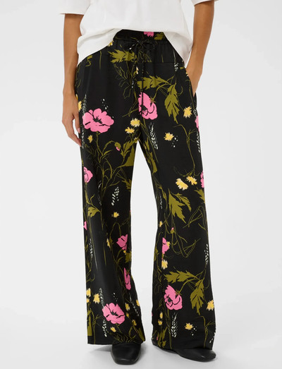 Featuring a wide-leg silhouette, these trousers offer a relaxed fit. The design incorporates a comfortable drawstring waist, making them ideal for everyday wear. The all-over floral print adds a touch of visual interest.