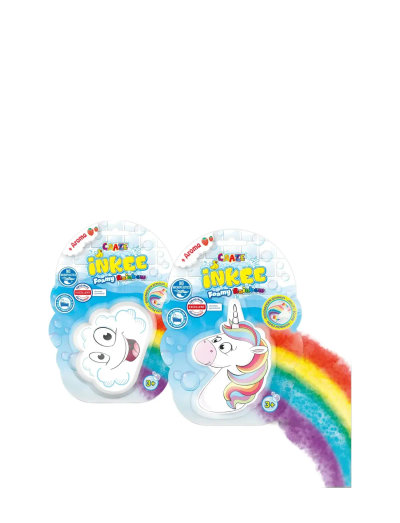 Bath bomb that releases a foamy rainbow trail in the water.