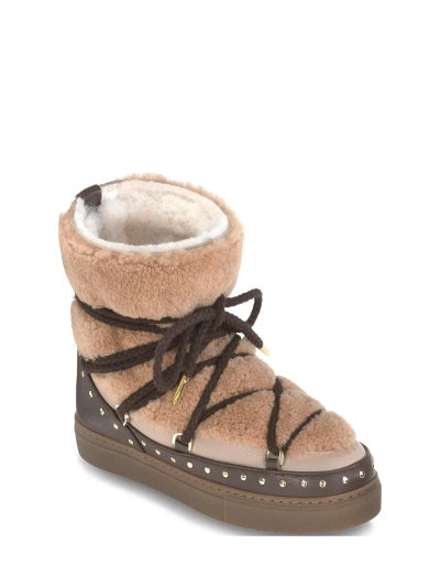 Lace-up detailing and a plush lining define these winter boots. Metallic studs add a touch of subtle shine, while the sturdy sole ensures traction on slick surfaces.