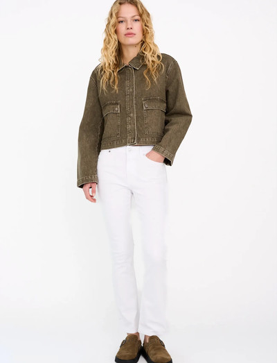 Our Johanna jeans in a clean white denim . It has a skinny fit, mid waist and cropped flare leg. With the kick flare leg, this fit is great for shorter legs and just begging to show off your best pair of shoes. Size & Fit- Mid waist- Kick flared leg - True to size, take your normal size- Medium/ High stretch