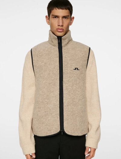 Versatile, insulated, and clean. The Duncan Vest features a wool blend fleece with zip pockets, elastic trims, and a J.Lindeberg metal chest logo. Perfect for layering in cool conditions.