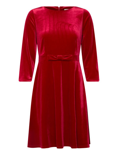 Karita is an elegant velvet dress that blends classic sophistication with modern details. Designed with a round neckline and a cute bow-detail at the waist, it features 3/4 long sleeves and a flattering silhouette that enhances the figure with grace. The luxurious velvet fabric drapes beautifully, making Karita the perfect choice for festive occasions.