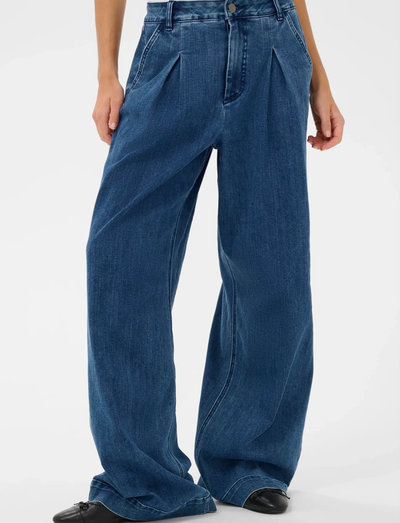 Wide fitWith a flattering high waist and a relaxed, wide leg, these jeans offer both comfort and style. The classic denim construction is elevated by subtle pleats at the front, adding a touch of sophistication to the casual silhouette. Perfect for everyday wear, these trousers can be dressed up or down with ease.