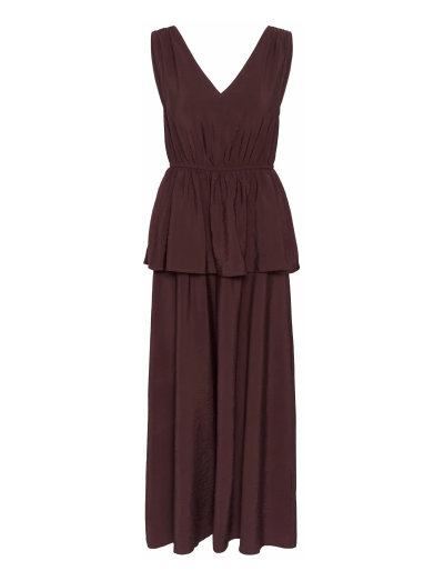 Featuring a flattering V-neck and a tiered design, this maxi dress offers effortless style. The flowing silhouette and lightweight fabric make it perfect for warm weather.