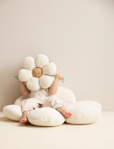 This daisy-shaped cushion has two faces—one cheerful and wide awake, the other calm and sleepy. Depending on the time of day (or the mood), simply turn it around to match. With soft little arms poking out, it’s always ready for a cuddle, a nap or whatever story you decide to play out together. Or maybe play peek-a -boo with your baby