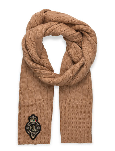 Featuring a classic cable-knit design, this scarf offers both warmth and timeless style. It's finished with a signature logo patch, adding a touch of understated branding. The soft blend of materials ensures a comfortable feel against the skin.