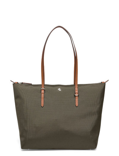 Crafted with durable nylon and designed with sumptuous faux-leather straps, the medium Keaton tote features a spacious silhouette, perfect for carrying the day’s essentials. A versatile must-have, it’s finished with an “LRL” metal logo at the front for signature style.Two top handles, each with a 9.5" drop.Top zip closure.Polished "LRL" metal logo at the front.