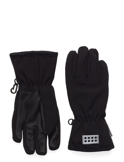 Water-repelling black LEGO softshell gloves for children. They have an elastic at the wrist for a comfortable fit. On the front, there is a reflector shaped as a LEGO brick. The children’s softshell gloves are breathable and windproof. PU coating in the palm for a better grip and microfleece lining for extra comfort. With a fluorine-free surface treatment, Bionic Finish ECO, on the outside.