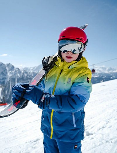 Cool LEGO® ski jacket for boys and girls with a pretty gradient print. The windproof and water-repellent children’s winter jacket has lots of ski features, making it ideal for the skiing holiday as well as for everyday life. The bright colour combinations make the jacket pop in the city or on the slopes. The filling is synthetic down for a super comfortable feel. The jacket has an integrated snow skirt with gripper elastic to keep the snow out and a ski pass pocket on the sleeve.