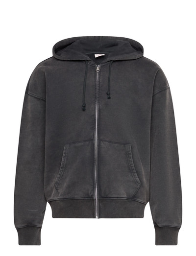 Featuring a full zip closure, this hoodie offers versatile layering options. The boxy fit provides a relaxed silhouette, while the grunge wash gives it a vintage-inspired look. It's finished with a drawstring hood and front pockets.