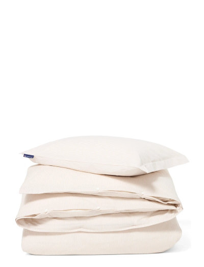 The timeless beige and white striped cotton sateen bed set brings a refined elegance to your bedroom with its classic yarn-dyed stripe design. Crafted from 100% high-quality cotton sateen weave, this bed set offers a super soft feel with a lustrous, superior finish that feels fresh against your skin. The 200 thread count combed cotton ensures both durability and comfort, while the Oeko-tex certification guarantees a product that's safe and environmentally friendly. The pillowcase features a practical envelope closure with wings at each short side, and the duvet cover is detailed with signature Lexington logo rubber buttons at the bottom.