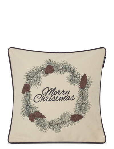 Our merry Christmas embroidered wool mix pillow cover provides the perfect seasonal focal point for your couch, chair or bed. In a luxurious light beige and polyester blend with eco-friendly recycled fibers, it features pine artwork on the front and contrasting velvet piping around the perimeter. A bottom zipper makes removal a snap. Produced in a certified Green Factory for a more sustainable future.