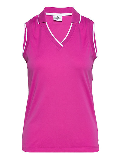 Sleeve less high-performance golf polo in a very thin and breathable technical quality. With a nice and feminine collar without buttons. Rib collar and rib sleeve ends with contrasts. The polo is made in a very lightweight, durable, and highly breathable polyester quality with lots of stretch. No need to iron. With a discreet Lexton Links® embroidery logo badge on the left sleeve.