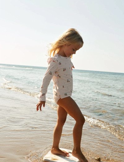 The quick-drying and breathable material makes the Tenley swim t-shirt a lightweight favourite for the beach or pool. It has UV40+ protection, a playful print and ruffles at the shoulders for added style detail. Complete the look with a pair of LIEWOOD swim trunks or shorts and a sun hat for ultimate sun protection.