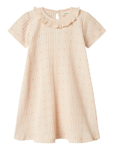 Refresh your child's wardrobe with beautiful and cool dresses perfect for any season and occasion. Jersey is a lightweight and stretchy fabric with a soft surface and inside for a comfortable feel and freedom to move. - Product Type : Dress - Neck : O-Neck - Sleeve : Short Sleeves (S/S) - Closing : Button and loop fastening - Extra details : Babylock detail, Frills, Label - Print : Print repeated across the entire surface of the product - Fit : Regular Fit