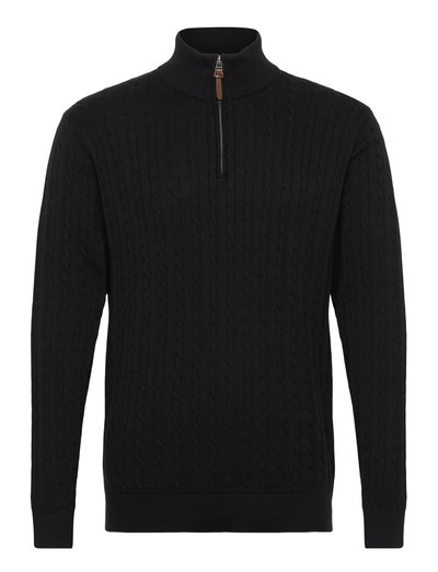 A textured cable knit adds visual interest to this versatile layer. The half-zip design allows for adjustable comfort, while the high neckline provides extra warmth. Perfect for layering or wearing on its own.