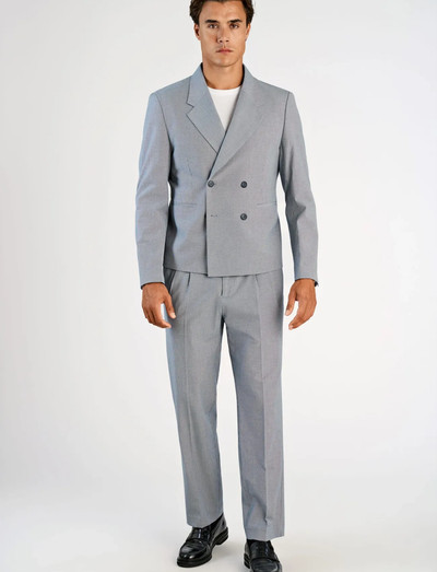 A sophisticated choice for formal occasions, this suit features a subtle houndstooth pattern. The double-breasted jacket is tailored for a modern, cropped fit, while the trousers offer a streamlined silhouette. A versatile addition to any wardrobe.