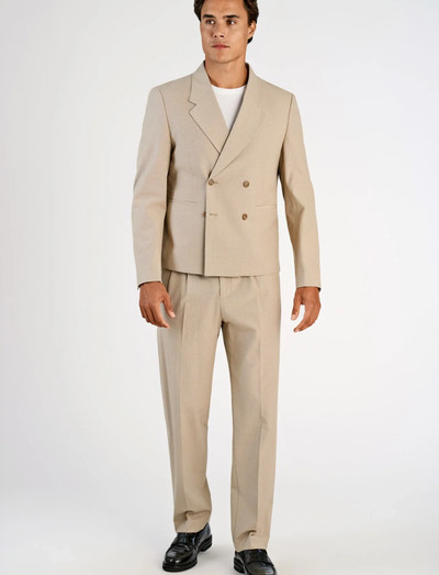 A sophisticated choice for formal occasions, this suit features a subtle houndstooth pattern. The double-breasted jacket is tailored for a modern, cropped fit, while the trousers offer a streamlined silhouette. A versatile addition to any wardrobe.