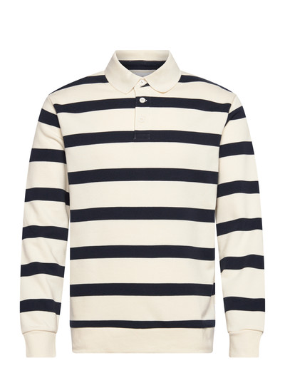 Offering a smart-casual look, this long-sleeved polo sweatshirt features a horizontal striped pattern. The design incorporates a classic polo collar with a buttoned placket, making it a versatile addition to any wardrobe.