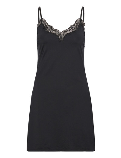 A beautiful black slip in soft quality with lustre featuring a sheer lace trim.