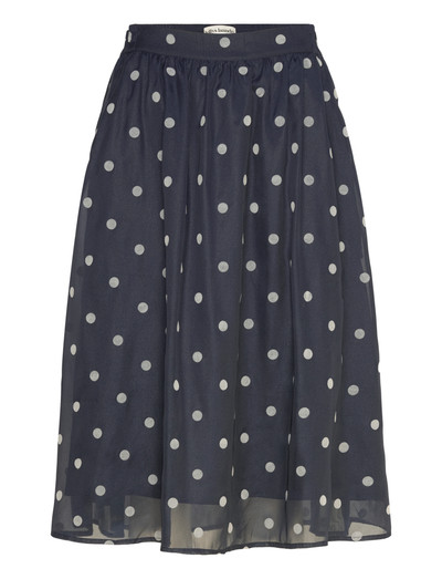 EllaLL is a feminine skirt in a light and transparent material featuring a classic dark blue polka dot print. It has a fixed waistband at the front and elastic at the back, while the soft silhouette creates a beautiful drape. The skirt is beautifully styled with the PineLL top in the same material for a complete look. Light and transparent quality with polka dot print Comfortable fit Soft silhouette with a beautiful drape Beautifully styled with the PineLL top in the same material Fixed waistband at the front and elastic at the back---Measurements:XS: Waist, relaxed: 68 cm / Waist, stretched: 90 cm / Length: 72 cmS: Waist, relaxed: 72 cm / Waist, stretched: 94 cm / Length: 73 cmM: Waist, relaxed: 76 cm / Waist, stretched: 98 cm / Length: 74 cmL: Waist, relaxed: 82 cm / Waist, stretched: 104 cm / Length: 75 cmXL: Waist, relaxed: 88 cm / Waist, stretched: 110 cm / Length: 76 cmXXL: Waist, relaxed: 94 cm / Waist, stretched: 116 cm / Length: 77 cm