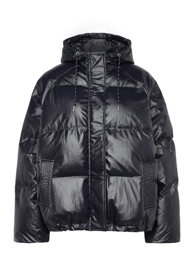 Last seasons viral sensation returns in a bold dark navy version. The popular ShelbyLL puffer jacket features a voluminous fit, inner ribbed cuffs, an adjustable elastic hem, and a large hood perfect for cold days and cool outfits. The fabric has a subtle texture and a discreet shine that gives the jacket a modern, sporty look. Puffer jacket Oversized fit with high collar and hood with drawstring Adjustable hem and side pockets Inner ribbed cuffs for extra wind and cold protection Closes with zipper and snap buttons Fabric has a light texture and a subtle shine---Measurements:XS: Chest: 136 cm / Length: 69 cm / Sleeve length (raglan): 79.4 cmS: Chest: 140 cm / Length: 70 cm / Sleeve length (raglan): 80.2 cmM: Chest: 144 cm / Length: 71 cm / Sleeve length (raglan): 81 cmL: Chest: 148 cm / Length: 72 cm / Sleeve length (raglan): 81.8 cmXL: Chest: 152 cm / Length: 73 cm / Sleeve length (raglan): 82.6 cmXXL: Chest: 156 cm / Length: 74 cm / Sleeve length (raglan): 83.4 cm