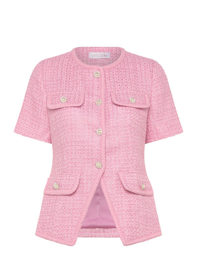 A chic white tweed top with a structured silhouette and elegant pearl buttons. Designed with short sleeves and decorative pockets, this piece adds a polished yet feminine touch to your everyday wardrobe and transitions effortlessly from day to evening. Match it with Lilo Shorts