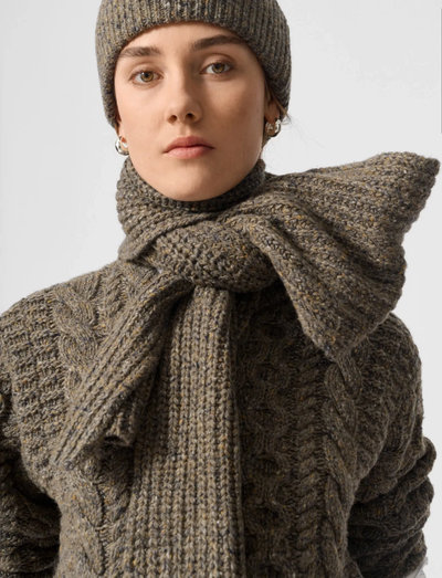 Ribbed texture defines this cosy scarf, perfect for adding warmth and subtle detail to any outfit. The simple design ensures it pairs well with a variety of styles, making it a versatile addition to your winter wardrobe.