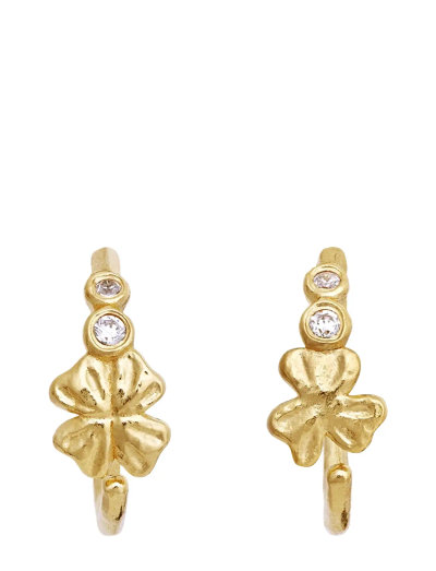 Delicate hoops featuring a clover design, these earrings add a touch of whimsy to any look. The subtle sparkle of small stones complements the textured metalwork.