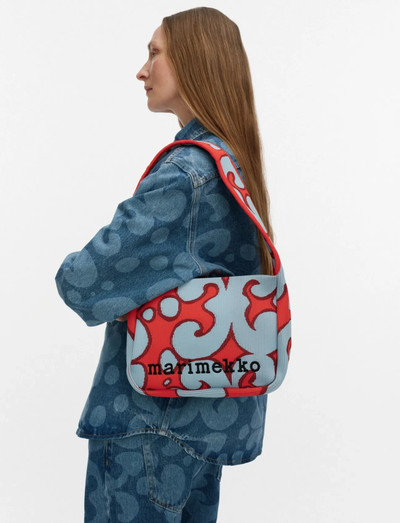 Featuring a bold floral pattern, this shoulder bag offers a distinctive look. The knitted construction provides a unique texture, while the wide strap ensures comfortable carrying.