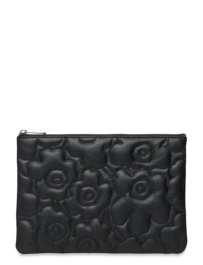 The Pouch Bag clutch is made of padded leather and it features the quilted Unikko pattern. The clutch has a zipper closure.