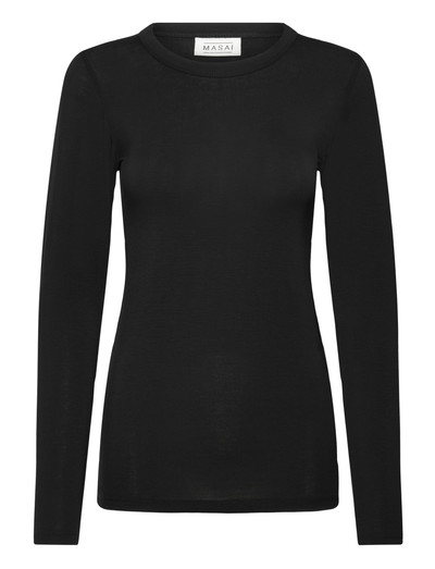 A classic long-sleeve top offers versatile styling options. The close-fitting design makes it ideal for layering or wearing alone.