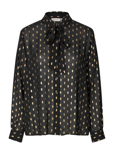 Crafted with a delicate tie-neck detail, this long-sleeved blouse offers a touch of refined elegance. The lightweight fabric drapes beautifully, making it ideal for layering or wearing on its own. Its subtle pattern adds visual interest without overwhelming the overall look.
