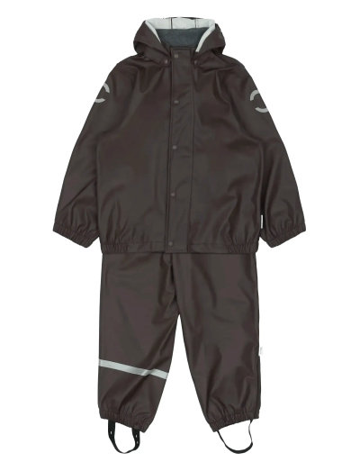 Mikk-line’s classic PU rainwear set with suspenders. This rainwear set is made of waterproof fabric from 66% GRS Recycled Polyester, 34% Polyurethane, and it is designed for children to have fun in the rain, jumping puddles, sliding down the wet slide, playing in the wet sandbox etc. Place the adjustable foot straps underneath the wellies/boots to prevent the pants from sliding up and keep the feet dry. The set also features a name tag with room for more than one name, so please pass it on and let it be re-loved.