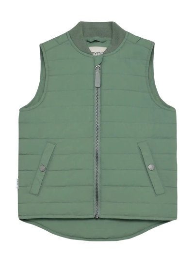 Quilted vest from Minymo. It is solid-colored and has pockets in the front. The vest is water- and dirt-repellent. Additionally, it features reflective details and a high-quality zipper. Coated with BIONIC FINISH® ECO. Certified acc. to GRS - Made with more than 50% Recycled Material