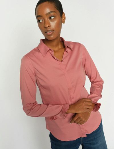 Looking to add a feminine touch to your outfit? Cut in a flattering slim fit, crafted in the softest stretchy fabric with a classic collar, feminine ruffled cuffs and classic button closure. Style it with tailoring and let the ruffled cuff peepout from the sleeves. Looking to add a feminine touch to your outfit? Cut in a flattering slim fit, crafted in the softest stretchy fabric with a classic collar, feminine ruffled cuffs, and classic button closure. Style it with tailoring and letthe ruffled cuff peep out from the sleeves.