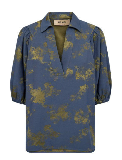 Crafted with a subtle V-neck and relaxed silhouette, this blouse offers a comfortable and stylish fit. The short sleeves and unique pattern make it a versatile addition to any wardrobe.