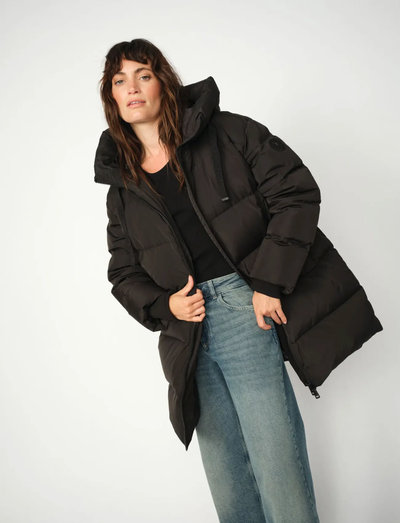 Stay warm this season with this cool down jacket. Designed in a slightly loose fit, finished with heavy zipper, high practical collar and filled with super lightweight down. The shorter length looks great with just about anything from dresses tojeans.