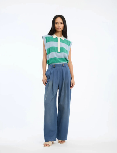 Trousers with wide front pleats and buttons as the key design element. Designed with practical belt loops, a secure button closure, and subtly placed side pockets, these trousers seamlessly transition from office to evening wear.